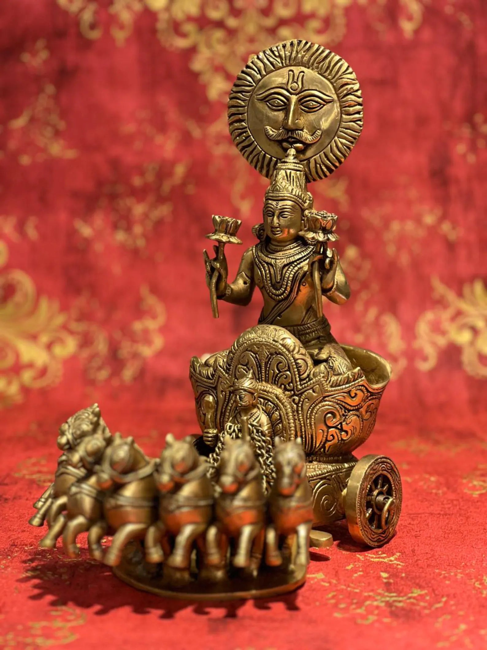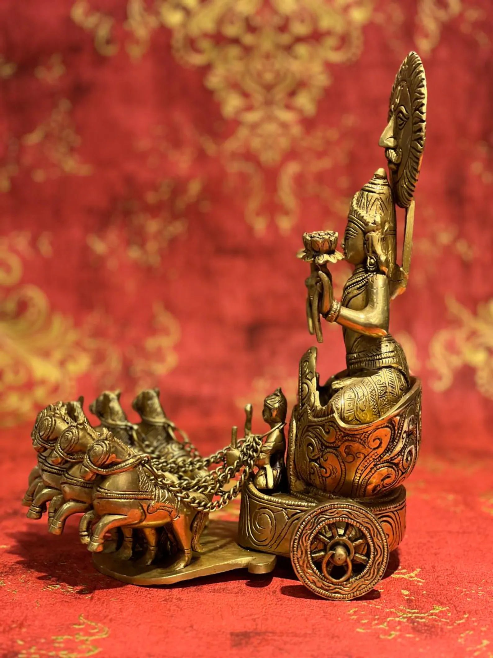 Brass Surya Chariot Statue: Divine Sun God Decor (12 inch)