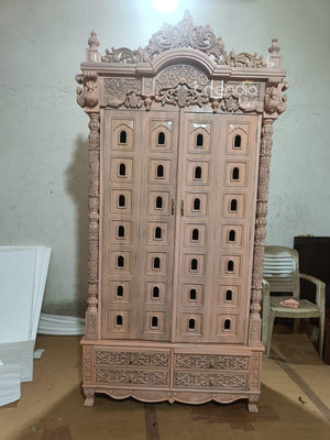 Bring home divine elegance with this beautifully hand-carved teak wood temple, designed to create a peaceful and sacred space in your home. With its intricate craftsmanship, graceful pillars, and detailed carvings featuring traditional motifs, this mandir reflects the richness of Indian heritage in its purest form.